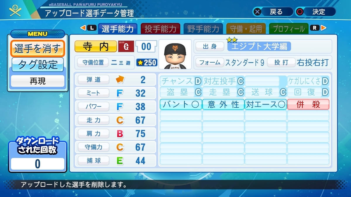 2020-10-21 寺内崇幸(巨人)【パワナンバー・パワプロ2020】 パワナンバー パワプロ2020 巨人 寺内 崇幸(てらうち たかゆき、1983年5月27日 - ) 栃木工業高校‐JR東日本‐巨人(07~18) 2013年成績.225 2本塁打 12打点 原巨人の名バイプレーヤー 内野守備を高いレベルでこなせるユーティリティ。 最初の三連覇時にキムタクが担った役割を二度目の三連覇時に担ったのが寺内。 時には相手エースから謎長打を発揮する事もあった故に数字以上に注意する必要があった選手だ。 [査定について] 割と役者の雰囲気あるわね 他の選手などはこちらから↓ www.gfan-pawapuro.com リクエストなどはこちらから↓ odaibako.net
