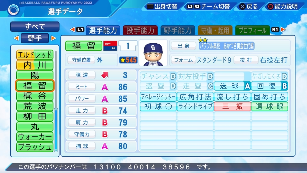 2022-04-25 福留孝介(中日)【パワナンバー・パワプロ2022】 パワナンバー パワプロ2022 中日 福留 孝介(ふくどめ こうすけ、1977年4月26日- ) PL学園ー日本生命ー中日(99~07)ーカブス(08~11)ーインディアンズ(11)ーホワイトソックス(12)ー阪神(13~) 2006年成績.351 34本塁打104打点 5ツールプレイヤー みんな知ってる [査定について] 強いしカッコいい Twitter↓ twitter.com 他の選手などはこちらから↓ www.gfan-pawapuro.com リクエストなどはこちらから↓ odaibako.net ようつべ↓ youtube.com