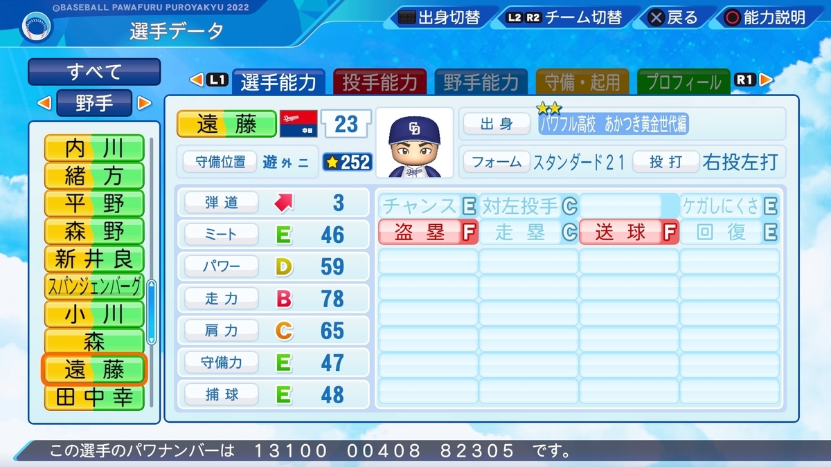 ・内野安打〇が候補になってきますが特能ない方が遠藤らしいかなと