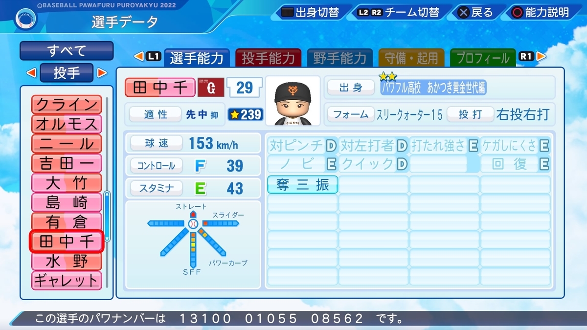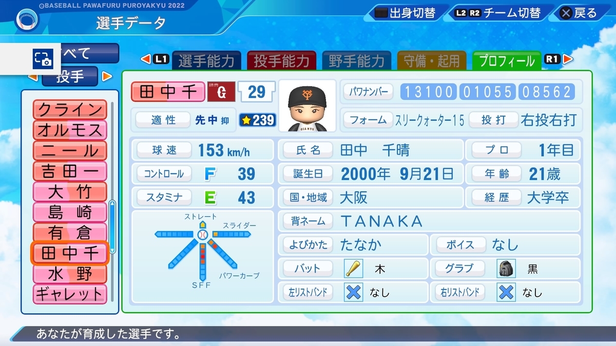 総じてまだプロ仕様の投手ではないが、リリーバーとして2.3年後の活躍を期待したいところ。
