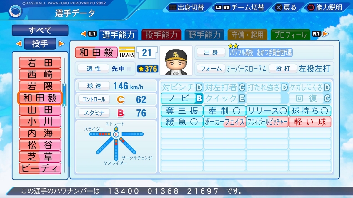 →サークルチェンジは代名詞ですが、この頃はまだ速球とスライダーが中心