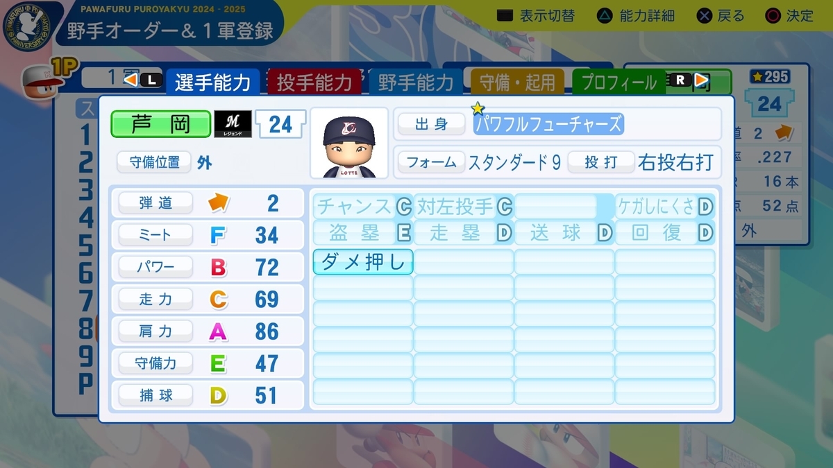 →どうでもよくなってきた時期に状態を上げる歯がゆいプロスペクト枠に相応しい能力を付けたかった